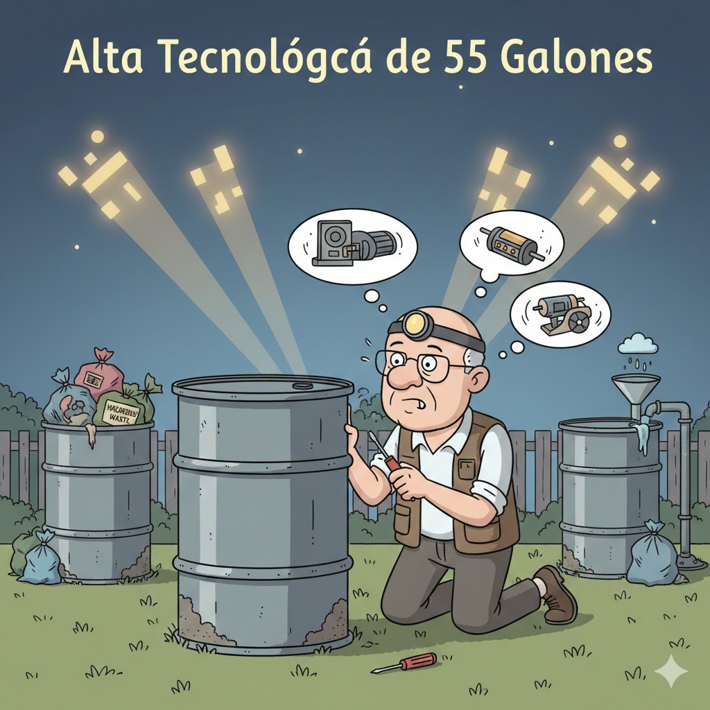 Al final, me rendí. Me di cuenta de que estos modelos deben ser de una categoría “estacionaria” que todavía no domino. Para no tenerlos allí estorbando, decidí darles un uso práctico: a uno lo llené de basura y el otro lo puse a recoger agua de lluvia. Sigo sin entender cómo hacen en los espectáculos para que esos armastrotes de 55 galones se queden suspendidos en el aire sin motores visibles. ¡La ingeniería de hoy día es un misterio! 😂😂😂