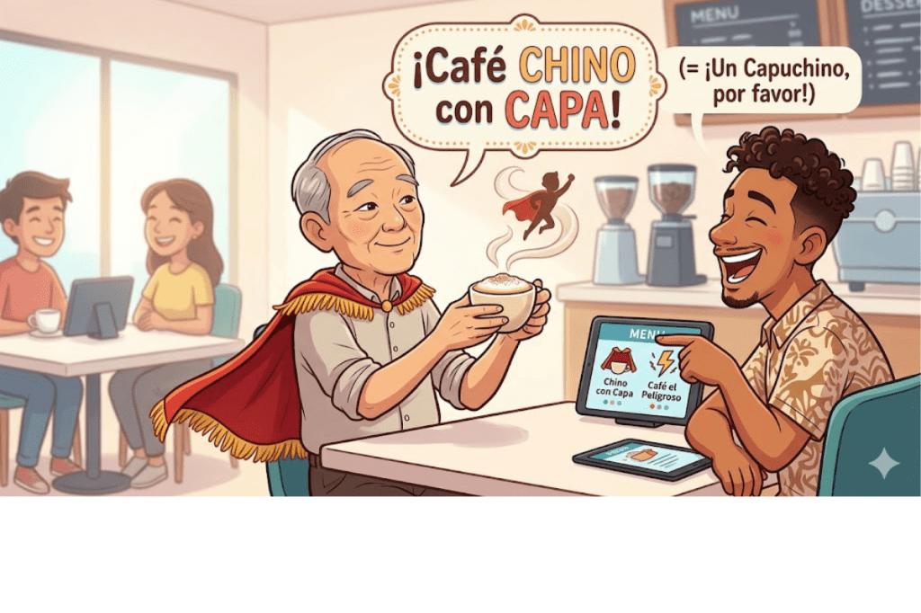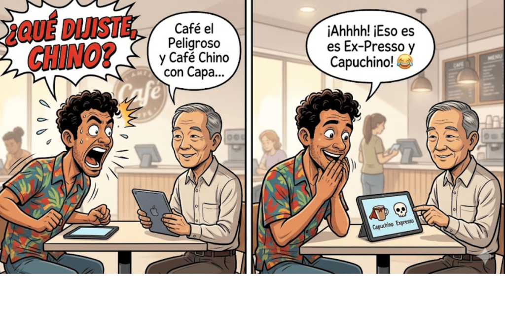 Pero lo mejor vino cuando me detalló los nombres de los cafés que le ofrecieron. Me hablaba del Latte, del estilo americano, del café griego (ese que sirven con granitos en el fondo, que en mi tierra llamamos “borra”)… y de pronto, con toda la seriedad del mundo, menciona el “café el peligroso” y el “café chino con capa”.